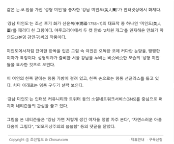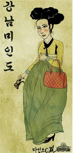 이렇게 신조어들이 생겨날 정도로 이슈화가 된 것은 아마도 만화가 마인드C 가 그린 '강남 미인' 그림이 큰 영향을 미치지 않았나 싶습니다.