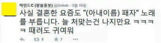 어머니를 패자~ 어머니를 패자~ 이러면 엥? 어머니???어머니를 패다니!!! 하겠지만 뚱메리를 패자~~ 하면 반응이 이토록 미적지근한 이유는 뭘까...둘다 똑같이 절대로 패면 안되는 대상인데...역시 사람들 머리속엔 '맞을짓을 했네' 라는 내용이 프로그래밍되어있어서?