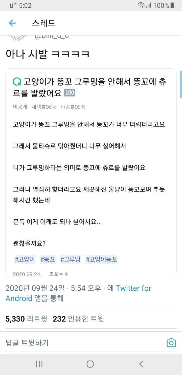 작성자냥까살 작성시간 20.09.25 ㅅㅂㅋㅋㅋ똥꼬에 츄르바르게 두는고양인교?