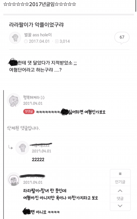 “라라 팔이” 라는 여혐 욕도 알아두고, 지양 합시다
