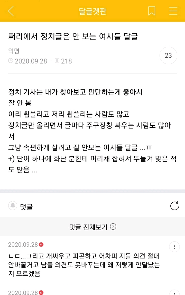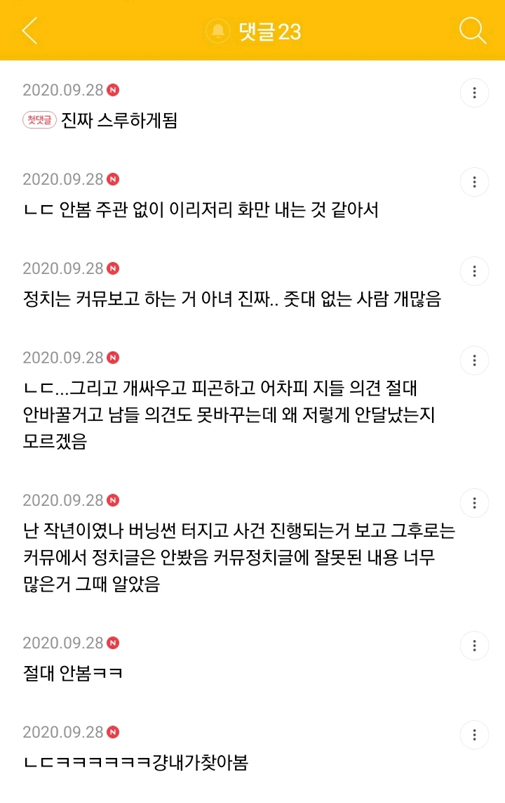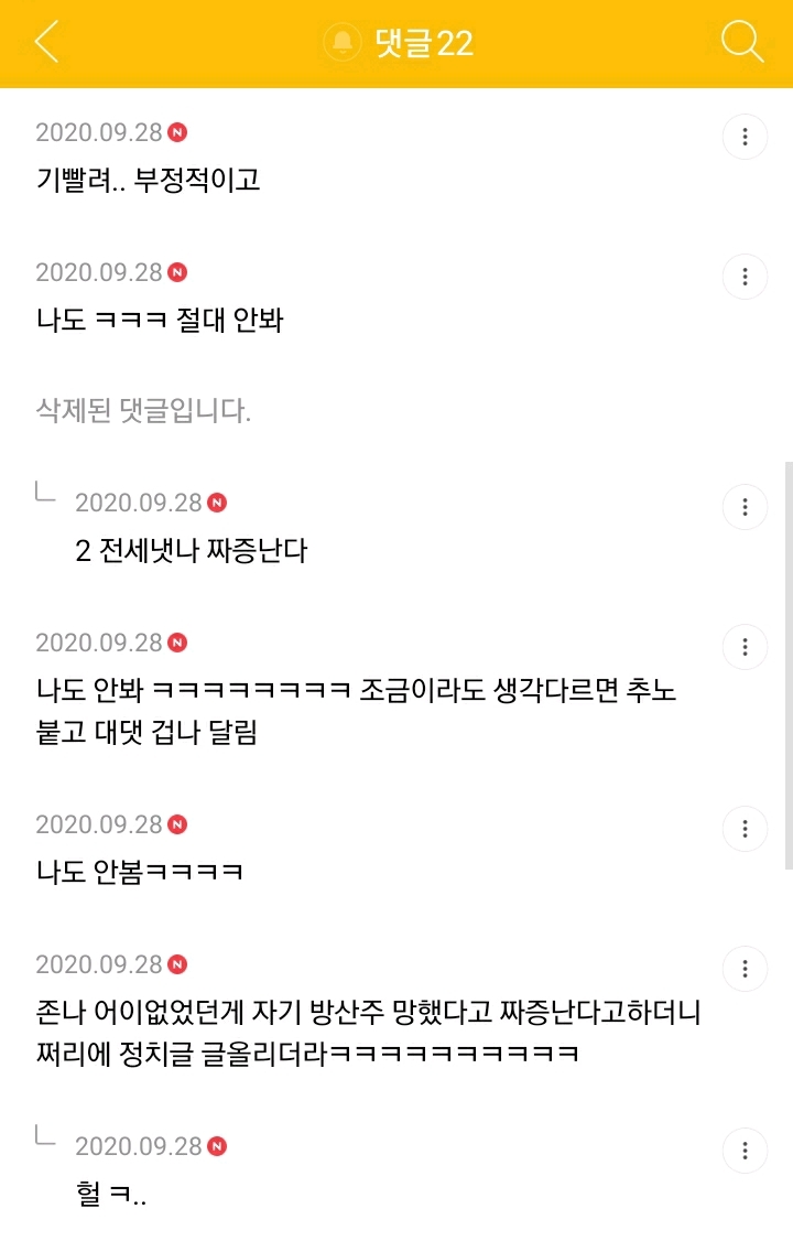 작성자하트가드 작성시간 20.09.29 클릭도 안함 댓글 여론 꽉잡고있음