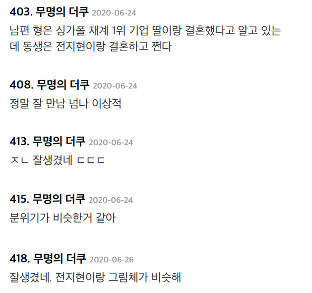 작성자고구마고구마 작성시간 21.06.04 젼젼 남편 연어중인데 이 사람 실물 쩔음 살쪘다기보다 덩치 개크고 잘생겼어 글고 젼젼보다 꾸미고 다니더라 젼젼은 얼굴 다가리고 편하게 다니고