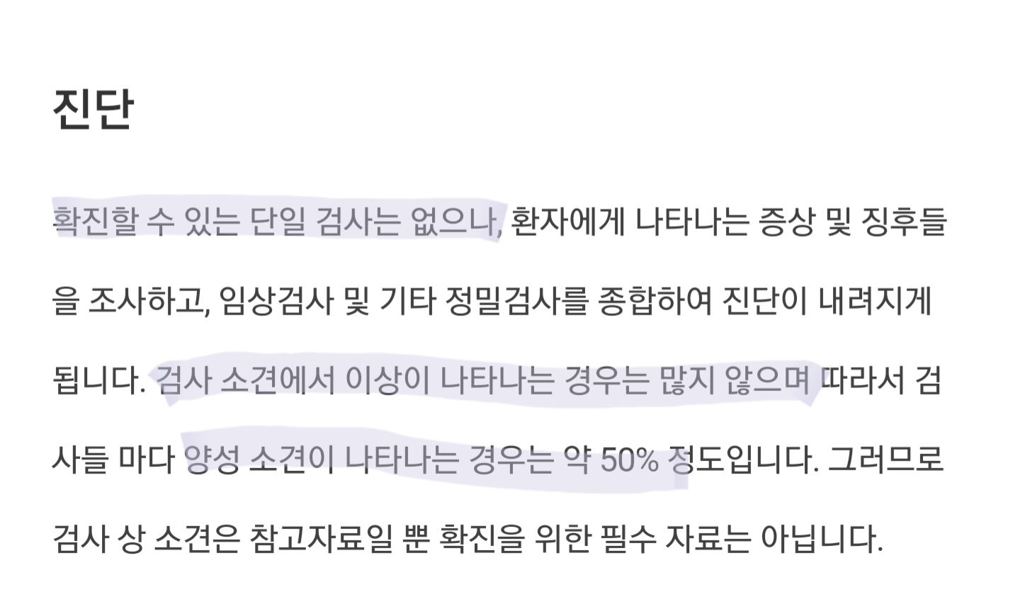 3. 병의 원인을 알 수 없기 때문에 확진 판정이 까다로움