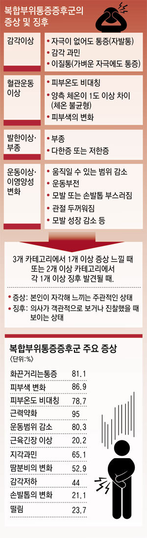 : 주로 사지의 말단 부위에 발병하는 경우가 가장 흔하지만 전신의 어느 곳이든 발병할 수 있어. 게다가 환자들마다 느끼는 통증의 강도, 종류가 다르고 증상도 다양해