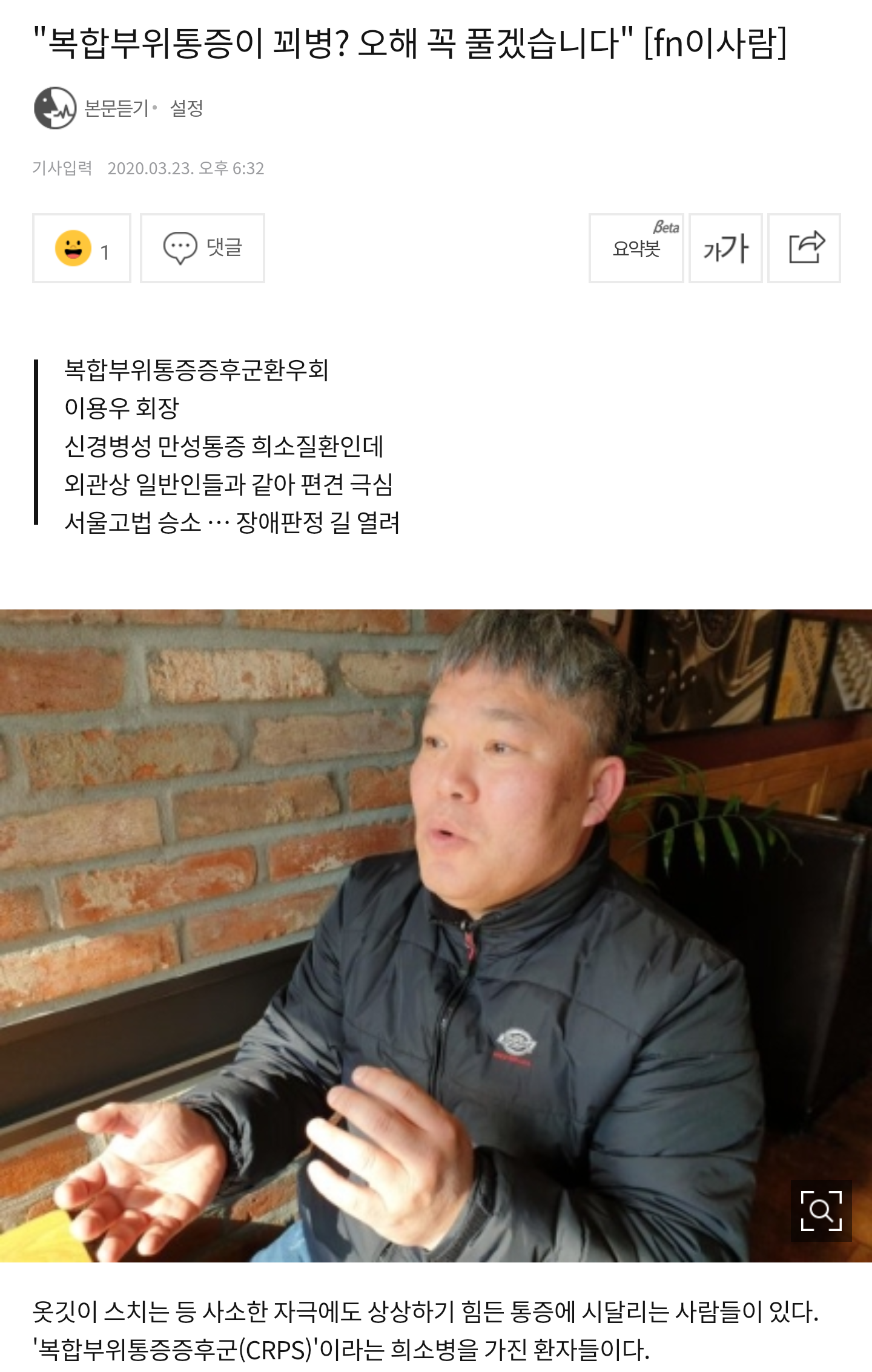 배우 신동욱 씨 덕분에 많은 사람들이 crps에 대해서 알게 됐지만 이 글을 통해서 한 사람이라도 더 이런 병이 있다는 걸 알아줬으면 했어.