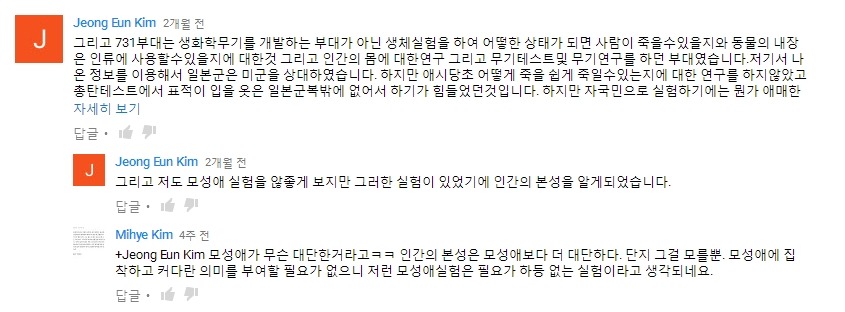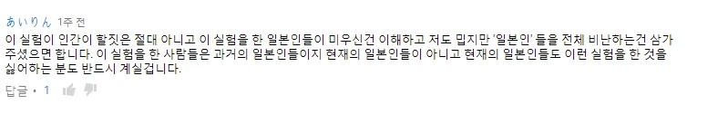 음 저는 일본 전체가 나쁘다고 생각하지 않아여 솔직히 저 실험을 하고 역사를 왜곡한 사람들이 나쁜거지