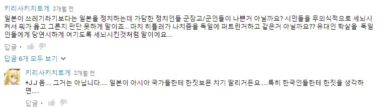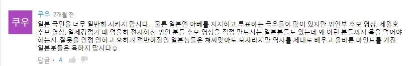 일본 국민을 너무 일반화 시키지 맙시다 역사를 제대로 배우고 올바른 일본분들은 욕하지 맙시다:)