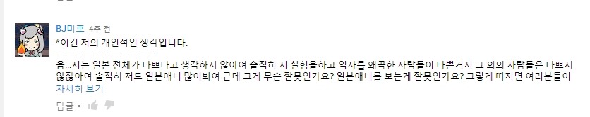 그외의 사람들은 나쁘지 않잖아여 솔직히 저도 일본애니 많이 봐여 근데 그게 무슨 잘못인가요? 일본애니를 보는게 잘못인가요?
