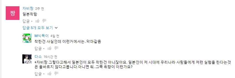 (얘는 걍 진성 일본인이 번역기 돌려서 댓글 달았음)