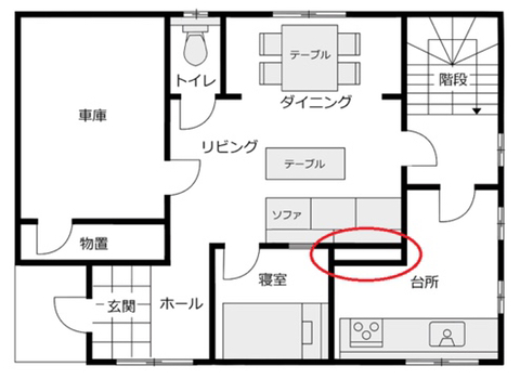 1층, 부엌과 거실의 사이에, 수수께끼의 공간이 있다.