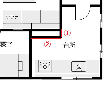 K : 부엌에 있는 두개의 벽. 이게 없으면 수수께끼의 공간이 생기지도 않았고, 부엌도 넓었겠죠.