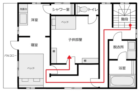 K : 가령 계단으로 2층을 와서 어린이 방으로 가려면 꽤 돌아가야합니다.