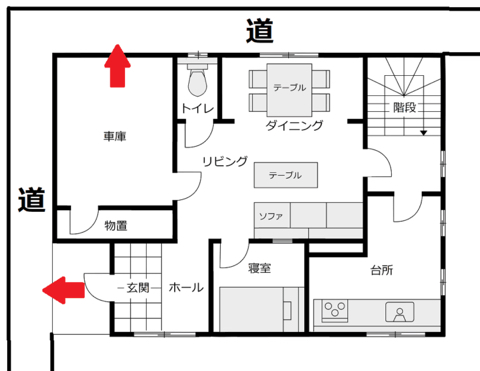 K : 현관과 차고의 방향을 생각해보면, 이 집은 두 변이 도로에 인접해 있는게 아닐까요.
