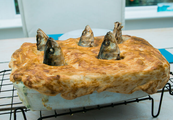 영국 사람의 시점에서는 아주 멋지고 맛있어보인다는 정어리 파이는 사진처럼 파이 밖으로 정어리의 머리가 잔뜩 삐져나와있는 형태입니다.