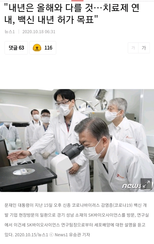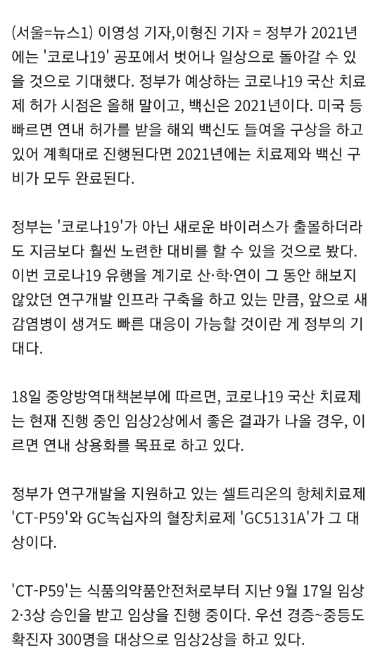 [여시뉴스데스크]"내년은 올해와 다를 것…치료제 연내, 백신 내년 허가 목표" 작성자물먹은황소|작성시간20.10.18|조회수2,009 목록 댓글 13 글자크기 작게가 글자크기 크게가 출처 :https://m.news.nate.com/view/20201018n02189 다음검색 현재 게시글 추가 기능 열기 북마크 공유하기 신고 센터로 신고 댓글 댓글 13 댓글쓰기 답글쓰기 댓글 리스트 작성자이시대최고의퀸카블랙핑크 | 작성시간 20.10.18 제발 작성자큐바 | 작성시간 20.10.18 와 제발 작성자어쩌라고어쩔건데니나잘해 | 작성시간 20.10.18 화이팅 !!!!! 작성자헤리포터 | 작성시간 20.10.18 연내..라는 뜻이 뭐야? 답댓글 작성자헤리포터 | 작성시간 20.10.18 아항 고마워! 댓글 전체보기