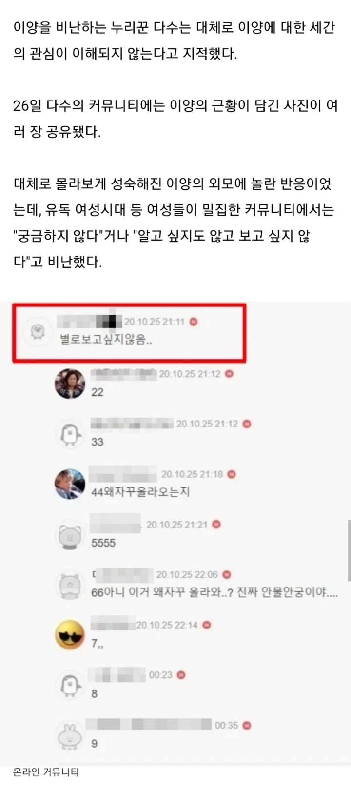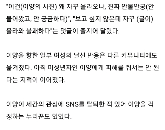 [흥미돋]인사이트 관리자가 올린 이재용 딸 반응 여시댓글 캡쳐 작성자코다차야김볶|작성시간20.10.27|조회수24,712 목록 댓글 78 글자크기 작게가 글자크기 크게가 출처 :https://m.insight.co.kr/news/309656일부로 악의적으로 올린듯 다음검색 현재 게시글 추가 기능 열기 북마크 공유하기 신고 센터로 신고 댓글 댓글 78 댓글쓰기 답글쓰기 댓글 리스트 작성자그냥빌런 | 작성시간 20.10.27 ...? 왜겠냐고 어린애를 가지고 자꾸 기사 올라오면 뭐가 되겠냐고 작성자총각(김치)먹고싶다 | 작성시간 20.10.27 이게 비난이라고? 으휴 인사이트 믿거 ㅉㅉㅉㅉㅉ 작성자장래희망은 황금메갈 | 작성시간 20.10.28 애 신상 뭐하러 까냐고 보기싫다는건데 존나 꼬아서 보네 진짜어휴 한심.. 작성자행복한여시! | 작성시간 20.10.28 저게 무슨 비난이야,, 작성자발로나초코마들렌 | 작성시간 20.10.28 인사이트가 언론이냐 댓글 전체보기