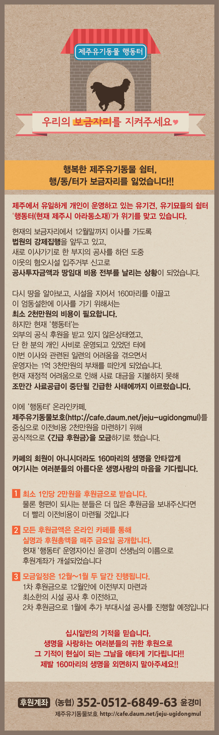 작성자핫초ㅑㅑ 작성시간 12.12.14 안그래도유기견후원하고싶었는데조금이라도해야겠다ㅠㅠ