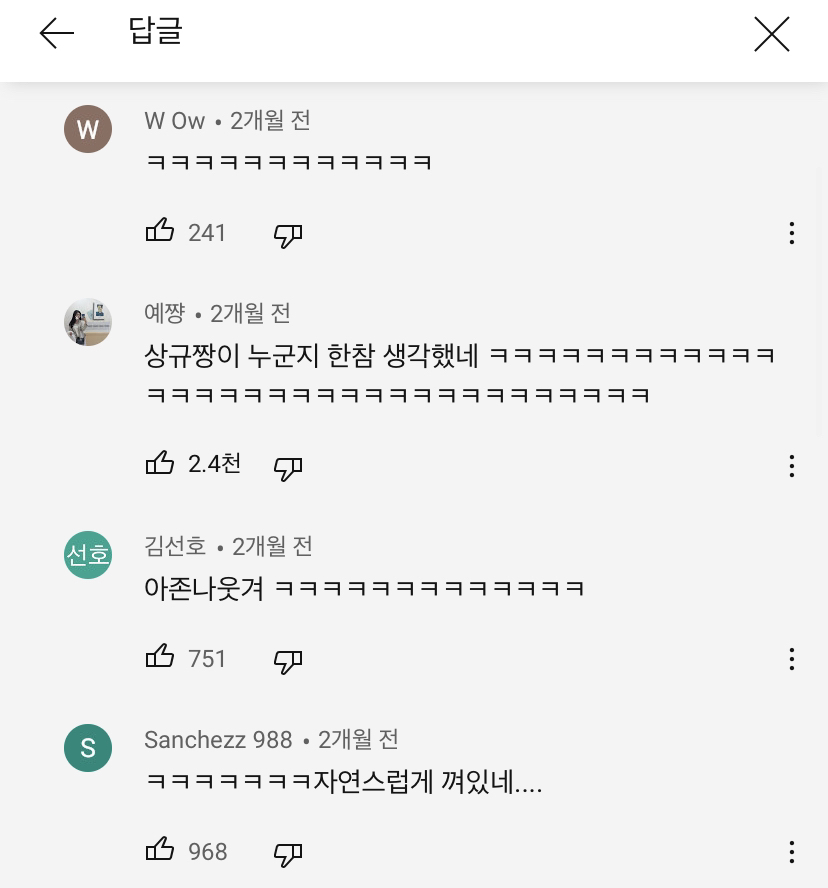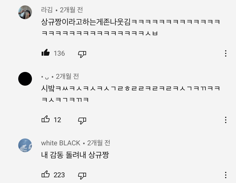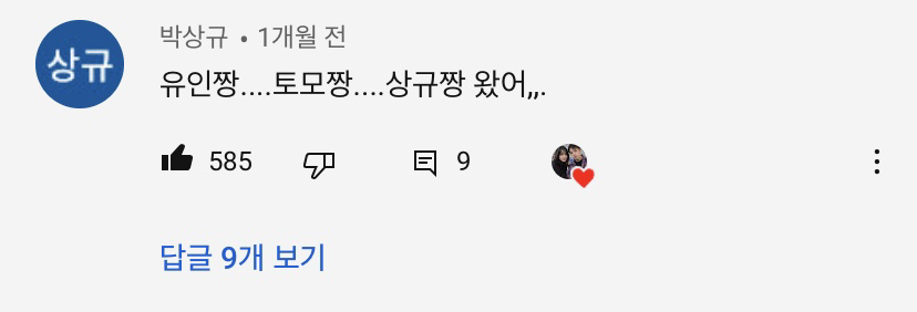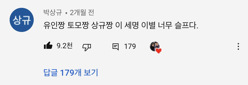 그리고 이별영상 다음에 올라온 영상의 상규짱 댓글