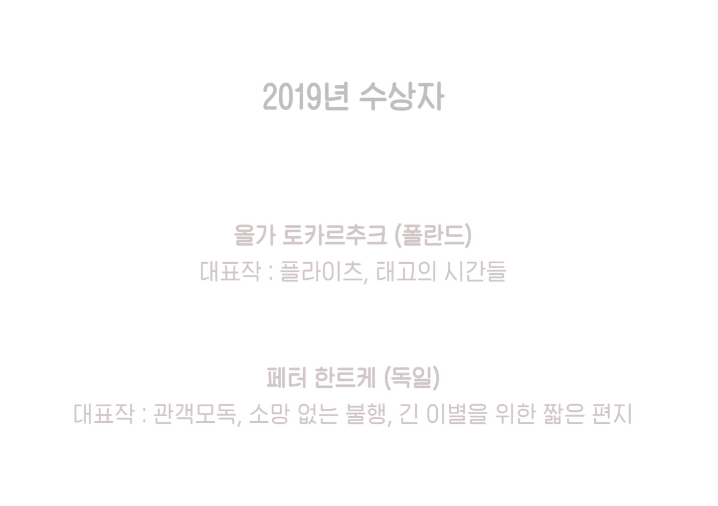 [스크랩] [흥미돋]최근 14년 노벨 문학상 수상자&대표작 리스트 작성자데본아오키|작성시간20.11.08|조회수1,879 목록 댓글 9 글자크기 작게가 글자크기 크게가 출처: 여성시대 데본아오키🚫 무성의 댓갈피 금지 🚫🚫 무성의 댓갈피 금지 🚫🚫 무성의 댓갈피 금지 🚫 다음검색 스크랩 원문 : 비공개카페 현재 게시글 추가 기능 열기 북마크 공유하기 신고 센터로 신고 댓글 댓글 9 댓글쓰기 답글쓰기 댓글 리스트 답댓글 작성자앜ㅋㅋㅋ | 작성시간 20.11.14 오 이거 위시에 넣어뒀는데 후루룩 읽혀? 어때? 작성자강조되고반복되는소리 | 작성시간 20.11.08 내가 알라딘이면 역대 노벨문학상 모음집 해서 팔고싶다 작성자강개 | 작성시간 20.11.08 올가 토카르추크 너무 좋아.. 작성자버터카야토스트 | 작성시간 20.11.08 밥딜런은 왜 없지.. 작성자1NTP | 작성시간 20.11.08 하나씩 읽어봐야겠다 잘걸렸다 밀리에 있겠지..? 댓글 전체보기