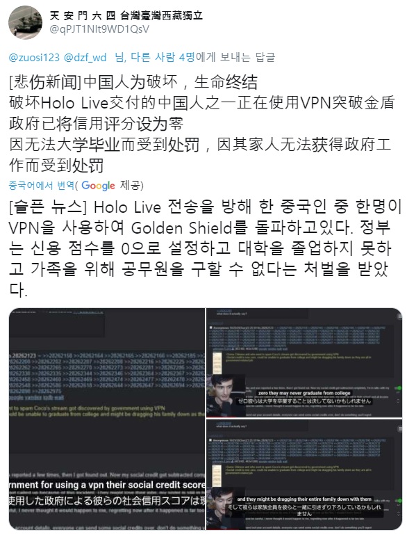 하는 소리를 들으며 양쪽에서 쳐맞던 홀로라이브 회사측은 악성 중국인들이 지독하게 테러만 일으키는 상황에 질렸는지