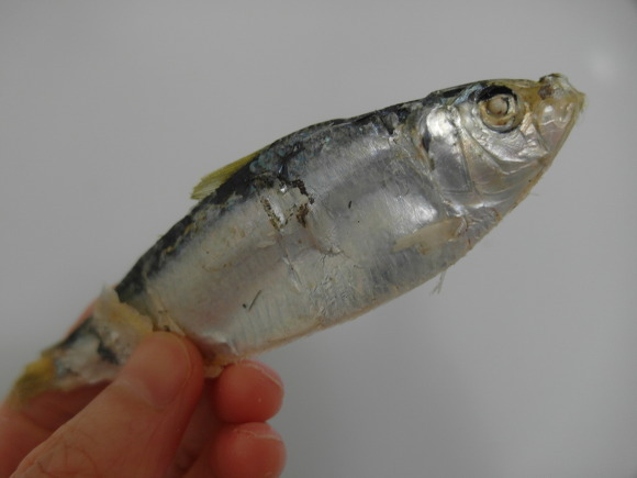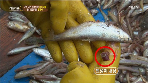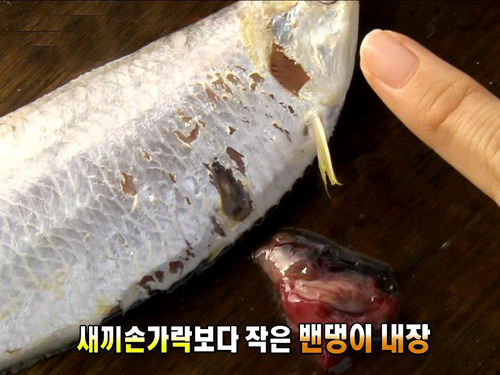 ! 놀랍게도 이 작은 생선의 내장은 무지하게 작다.
