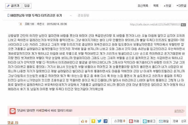 나는 오늘 아침에 알았고 심지어 오히려 나보고 톡하면서 걸레라는 거야 부모까지 들먹이면서;