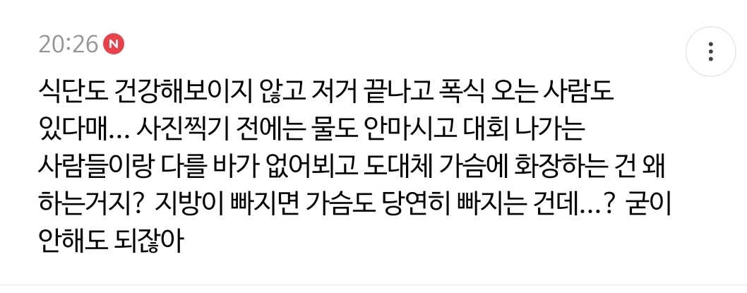 그리고 대회나갈때 가슴이 안이뻐서 수술하는 사람들도 많댔음 -