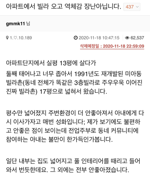 "아파트에서 빌라 오고 역체감 장난아닙니다."