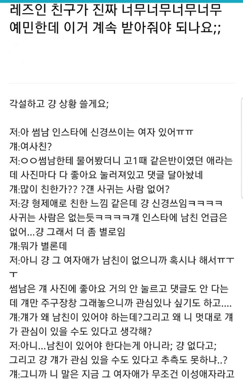 작성자•zoodasa• 작성시간 20.11.24 둘이 안 맞음 한 명은 남자 얘기만 하고 한 명은 지 의견 존중해 달라고 떼쓰고