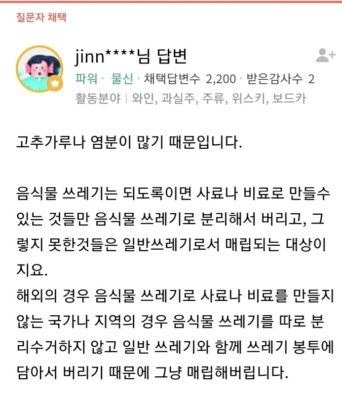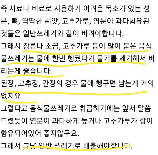 염분이 많아서 동물이 못먹음=일반쓰레기로 버려야함