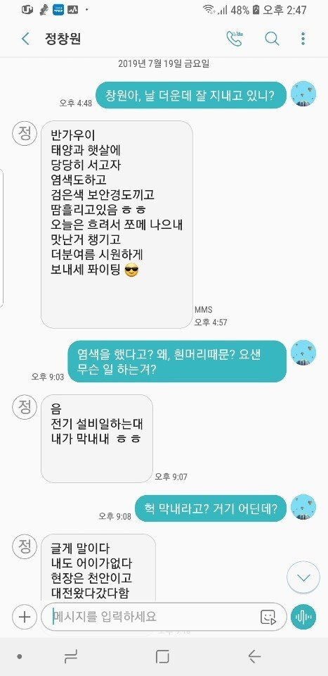 창원이는 현재 대전에 머무르며