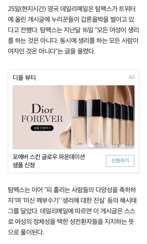 [스크랩] [씹빨쌔끼뜰]"생리 한다고 다 여자 아냐"..성소수자 옹호도 좋지만, '뿔난' 여성들 작성자젠더는해롭다|작성시간20.11.27|조회수3,026 목록 댓글 44 글자크기 작게가 글자크기 크게가 출처 : https://v.kakao.com/v/20201026095258301탐펙스???난 첨들어보는데여튼 불매 다음검색 스크랩 원문 : *여성시대* 차분한 20대들의 알흠다운 공간 현재 게시글 추가 기능 열기 북마크 공유하기 신고 센터로 신고 댓글 댓글 44 댓글쓰기 답글쓰기 댓글 리스트 작성자리미앤몽 | 작성시간 20.11.28 여자 : 성염색체 XX를 가진사람 미친놈들 왜이렇게 많아 진짜 세계 꼴이...ㅎ 작성자지독한 술꾼 | 작성시간 20.11.28 ^^ 몇년 째 쓰고 잇는데 갈아탄다; 작성자토끼보다 귀여운 우리 애기 | 작성시간 20.11.28 아예;ㅎㅎ 작성자채소수프 | 작성시간 20.11.28 또 유목민 됐네 시바 멍청하면 말을 하지마 작성자싸이버거먹고싶다 | 작성시간 20.11.28 진짜 개지랄이다 ㅋㅋㅋㅋㅋㅋ 댓글 전체보기