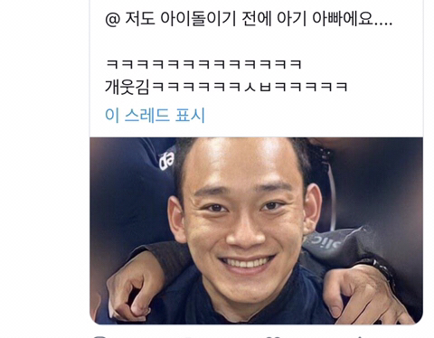 [흥미돋]??: 저도 아이돌이기 전에 애아빠예요-_- 작성자그리아나 아란데|작성시간20.11.29|조회수19,294 목록 댓글 28 글자크기 작게가 글자크기 크게가 출처 : 여성시대 그리아나 아란데 설명: 에스에프나인 로운한테 볼하트(애교) 해달랬더니 “저도 아이돌이기 전에 사람이에요-.-;;ㅋㅋ” 함그거패러디임사진은 엑소 첸 다음검색 현재 게시글 추가 기능 열기 북마크 공유하기 신고 센터로 신고 댓글 댓글 28 댓글쓰기 답글쓰기 댓글 리스트 작성자서타박스 | 작성시간 20.11.29 분명... 나름 아이돌 아니었노...?어쩌다 작성자케일헤니투스 | 작성시간 20.11.29 웃으면서 내려왔는데 나이가 92였구만아엌ㅋㅋㅋㅋㅋㅋㅋㅋㅋㅋㅋㅋㅋㅋㅋㅋㅋㅋㅋㅋㅋㅋ그런의미는 아니었지만ㅋㅋㅋㅋㅋㅋㅋㅋㅋㅋㅋㅋㅋㅋㅋ 답댓글 작성자뚜에부치이 | 작성시간 20.11.29 92살이면 ㅇㅈ 작성자쎄믈리에여시 | 작성시간 20.11.29 예 작성자살려주씨오 | 작성시간 20.11.29 ㅋㅋㅋㅠㅠ 우리 삼촌닮았어 댓글 전체보기