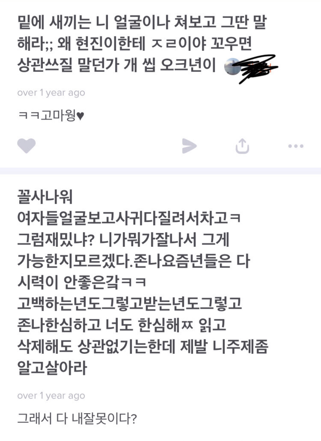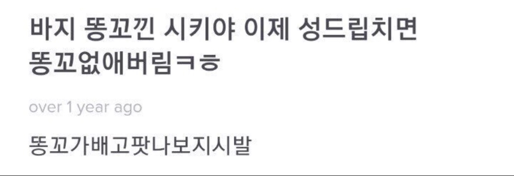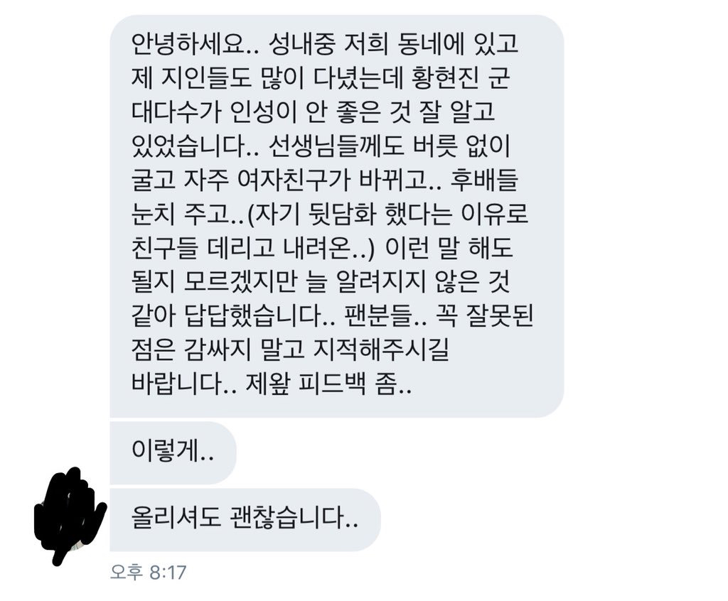 [흥미돋]과거 에스크에 패드립친 스트레이키즈 황현진 작성자ㅁ먀먐마|작성시간20.12.02|조회수21,843 목록 댓글 48 글자크기 작게가 글자크기 크게가 출처 : https://twitter.com/akclju5yqhx0m7?s=21황현진에스크해명해(@aKClJU5yQhx0m7) 님 | 트위터여기를 눌러 링크를 확인하세요twitter.com제왑 남돌임 인성본다더니; 다음검색 현재 게시글 추가 기능 열기 북마크 공유하기 신고 센터로 신고 댓글 댓글 48 댓글쓰기 답글쓰기 댓글 리스트 작성자하나뿐인내사랑동백씨 | 작성시간 20.12.11 롸...뭐놐ㅋㅋㅋㅋㅋ 이.이게무ㅓ노 와장창 작성자OXOXO | 작성시간 21.01.08 와한없이가볍네 작성자루시 리우. | 작성시간 21.01.08 와 👋 작성자패딩라이언 | 작성시간 21.02.22 와 진짜....한국여자들 저런거 알고도좋아해주늗거? ㄱ노이해다 노이해 작성자알페스=/=n번방 | 작성시간 21.02.22 와 개충격,,, 지금 학폭 줄줄이 터지는 중인데 얜 빨리 밝혀졋네;;; 댓글 전체보기