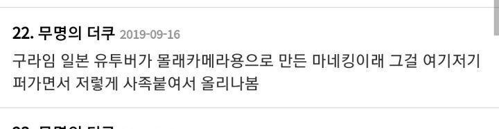 좆본 영상 조회수 늘려주기 싫어서 영상링크는 안가져옵니다. 저거 확인한다고 1회 늘려준것도 짜증남ㅠ