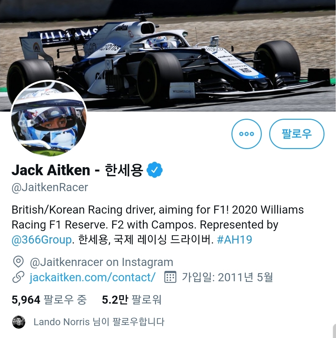 평소에도 영국과 한국인 레이싱 드라이버라고 소개하고