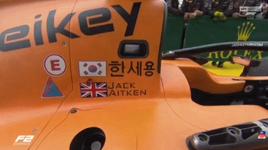 F2에서도 레이싱카 바깥에 한국과 영국 국기를 함께 새기고 출전했는데