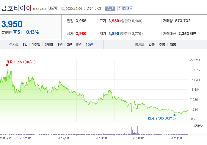 그래서 찾아본 금호타이어의 주가