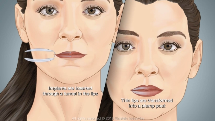 코수술 하는 것 처럼 입술에 실리콘을 넣는 것.