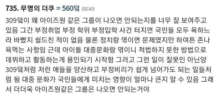 글고 어린걸로 치면 피해자가 아이즈원보다 한두명 제외하고는 더 어리던데 걔가 더 안타까움 -
