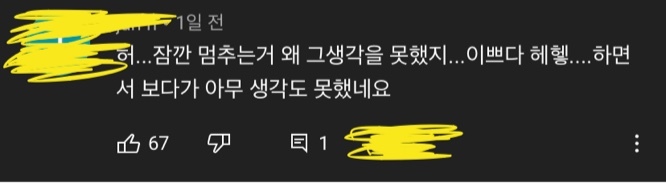 아래는 유튜브에서 캡처한 일부 팬들의 반응입니다. 감동을 받거나 아련한 내용(문제시 삭제하겠습니다)