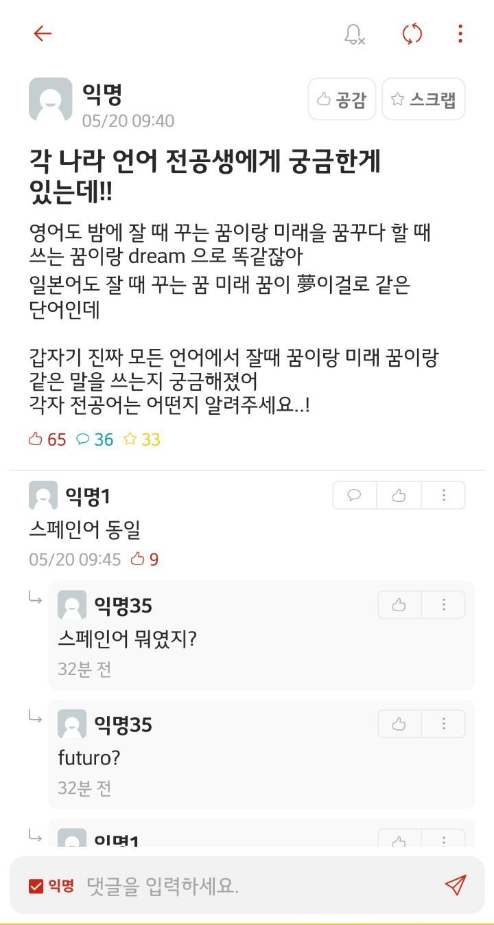 작성자Fu(heart) 작성시간 23.12.07 포르투갈어 똑같아 futuro는 미래고 sonho는 꿈이란 뜻인데 이루고 싶은 꿈 얘기할 때도 sonho 씀