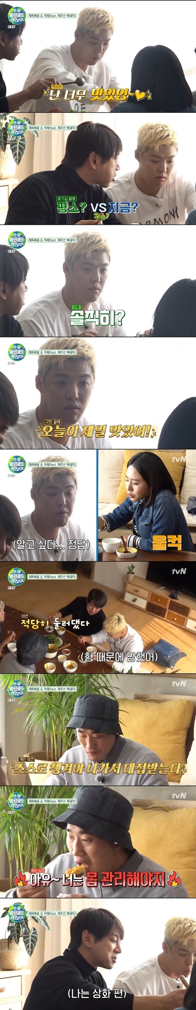 이상화 눈치를 보던 강남은 "오늘 먹은 게 제일 맛있어"라고 대답했고, 이상화가 울컥해하자 황치열은 "제주도 분위기라는 것도 있으니까"라며 둘러대 웃음을 자아냈다.