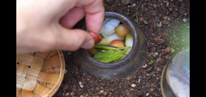 도대체 어떻게 기르시고 따는지 궁금한 모형 아닌 진짜 사과와 함께 존나 제대로 절인 무랑 생강+마늘 주머니를 존나 제대로된 옹기에 담아 삭히는 중