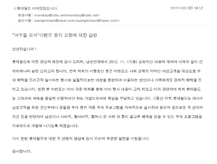어떻게 여자만 할인해주냐고 역차별이다 시전