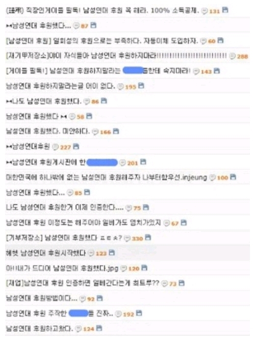 일베 비롯한 온갖 남초에서 후원인증이 뜸