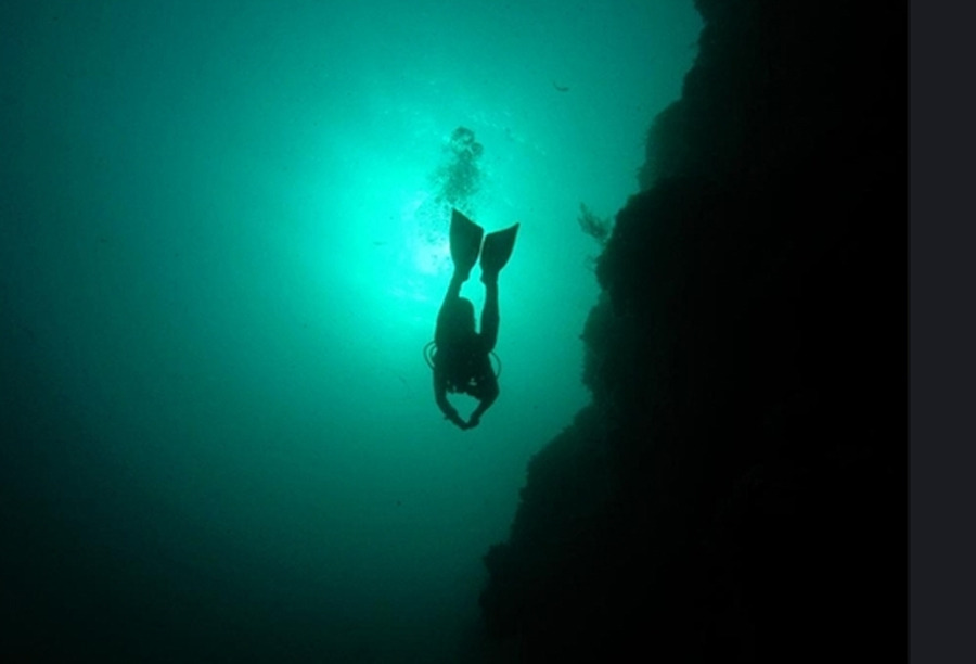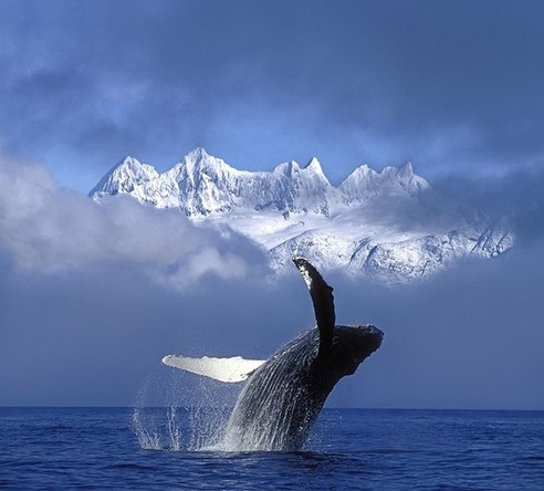 바닥이 안보이는 깊은 바다에서 헤엄치는 고래들...