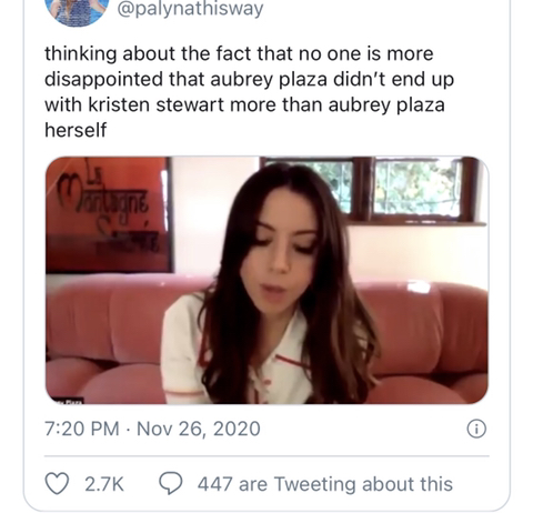 영화에서 오브리 플라자 캐릭터가 크리스틴 스튜어트 캐릭터랑 이어지지 못한 것에 대해서 제일 실망한게 (팬이 아니라) 오브리 자신이라는 것에 대해 생각 중