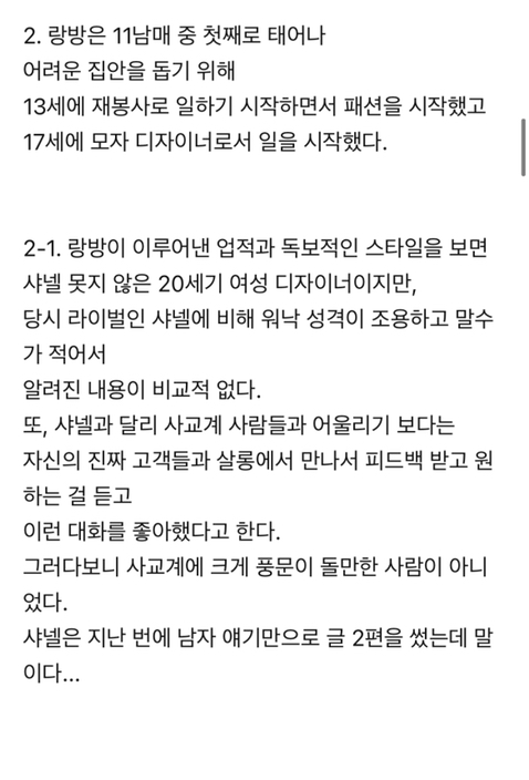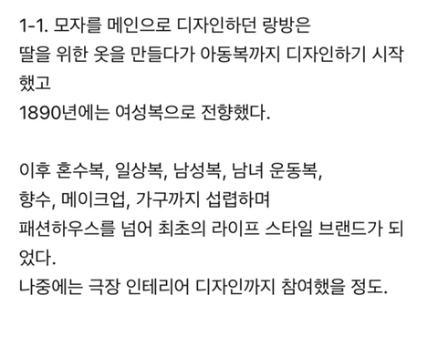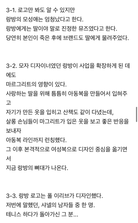 [흥미돋]명품 브랜드 랑방에 관한, 몰라도 1도 상관 없는 6가지 사실들 작성자질타|작성시간20.12.27|조회수5,380 목록 댓글 13 글자크기 작게가 글자크기 크게가 출처 : 여성시대 질타원출처 더쿠중간출처 https://cafe.naver.com/perfumelove/712880명품 브랜드 랑방에 관한, 몰라도 1도 상관 없는 6가지 사실들대한민국 모임의 시작, 네이버 카페cafe.naver.com문제시 둥글게 댓글 부탁드립니다. 다음검색 현재 게시글 추가 기능 열기 북마크 공유하기 신고 센터로 신고 댓글 댓글 13 댓글쓰기 답글쓰기 댓글 리스트 작성자켄네 | 작성시간 20.12.27 랑방 드레스 넘 예뿜.... 작성자혐생대격변 | 작성시간 20.12.27 랑방잔느 내 첫입문 향수야 작성자어쩌라고별꼴이야 | 작성시간 20.12.27 헐 신기하다 딸에게서 영감을 얻는다는게 괜히 가슴 저릿해 작성자뀨까츄ㅠㅠㅠ | 작성시간 20.12.27 랑방옷 넘조아 협찬받고싶다 작성자두두두두두두두두두 | 작성시간 20.12.27 내첫향수~ 댓글 전체보기