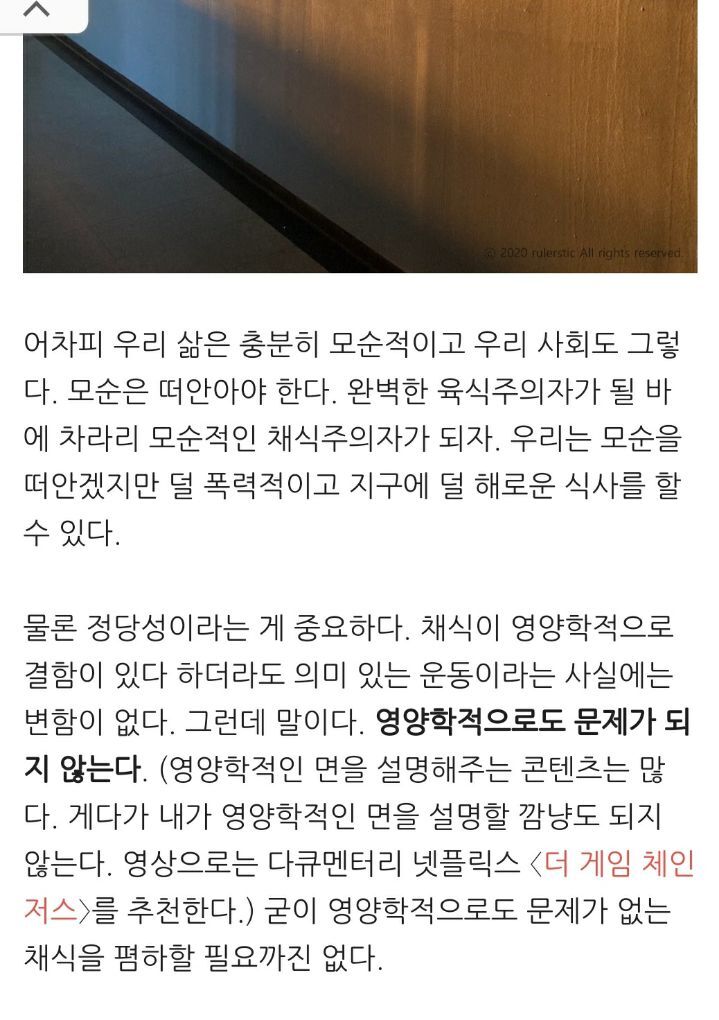 작성자clip 작성시간 20.12.30 완벽한 비건 한 명보다 불완전한 비건 지향인 100명이 더 가치 있다. 이거 진짜 맞어